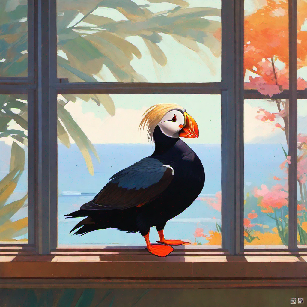 One day, as the children rehearsed a crucial scene, a commotion outside the window caught their attention. They turned their heads to see a tufted puffin with vibrant feathers, peering at them curiously. It was a rare sight, as tufted puffins seldom visited Seabreeze.