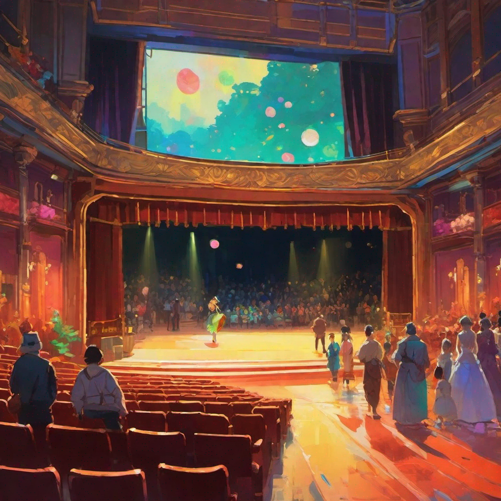 The town's community theater was transformed into a magical world, with colorful props and costumes scattered all around. The stage was decorated with a stunning backdrop, depicting a picturesque summer landscape. Everyone anxiously awaited the arrival of their friends and family, eager to showcase their talent and hard work.