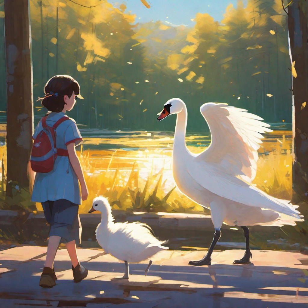 In the midst of the chaos, Lily's curiosity and compassion urged her forward. Bravely, she slowly approached the tundra swan, speaking softly as she extended her hand. The swan, sensing her genuine intentions, tilted its head and allowed Lily to stroke its feathers. The once chaotic scene transformed into a moment of calm and connection.