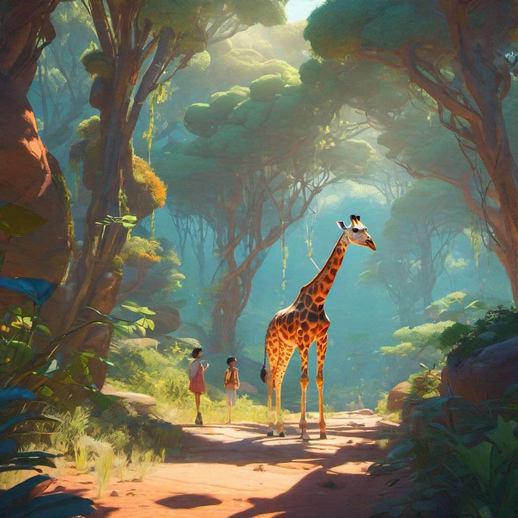 Once upon a time in a bustling city, there stood a park teeming with laughter and joy. In this park, a towering giraffe named Harold lived happily, his long neck swaying gracefully as he grazed on leaves high in the trees.