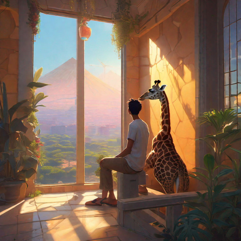 Curiosity burned within Harold's soul as his eyes, full of wonder, glanced beyond the park's tall walls. What secrets lay hidden in the outside world? He had heard stories from birds flying overhead, tales of endless savannas and lush landscapes.