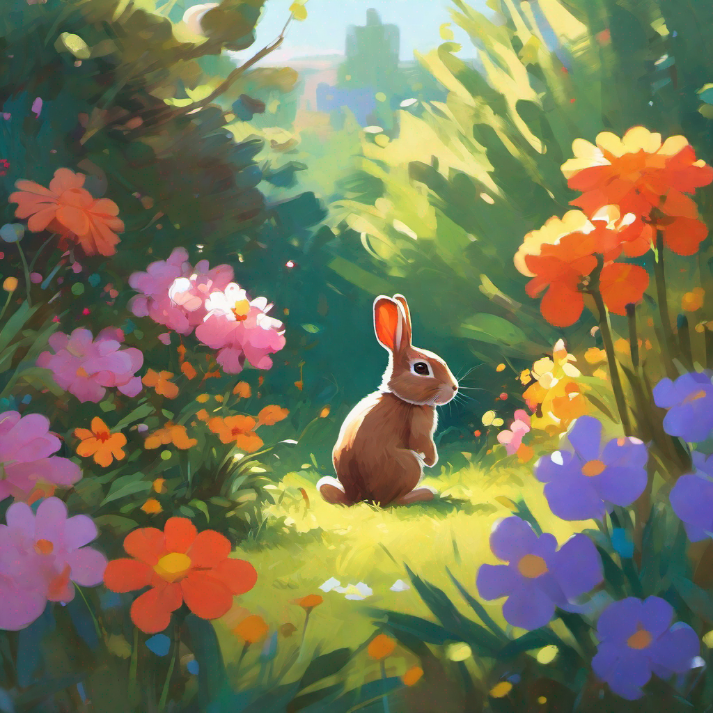 Once upon a time, in a quaint little garden, there lived a small brown rabbit named Oliver. With his fluffy tail bobbing behind him, Oliver hopped around the vibrant flowers, exploring every nook and cranny of his cozy home.